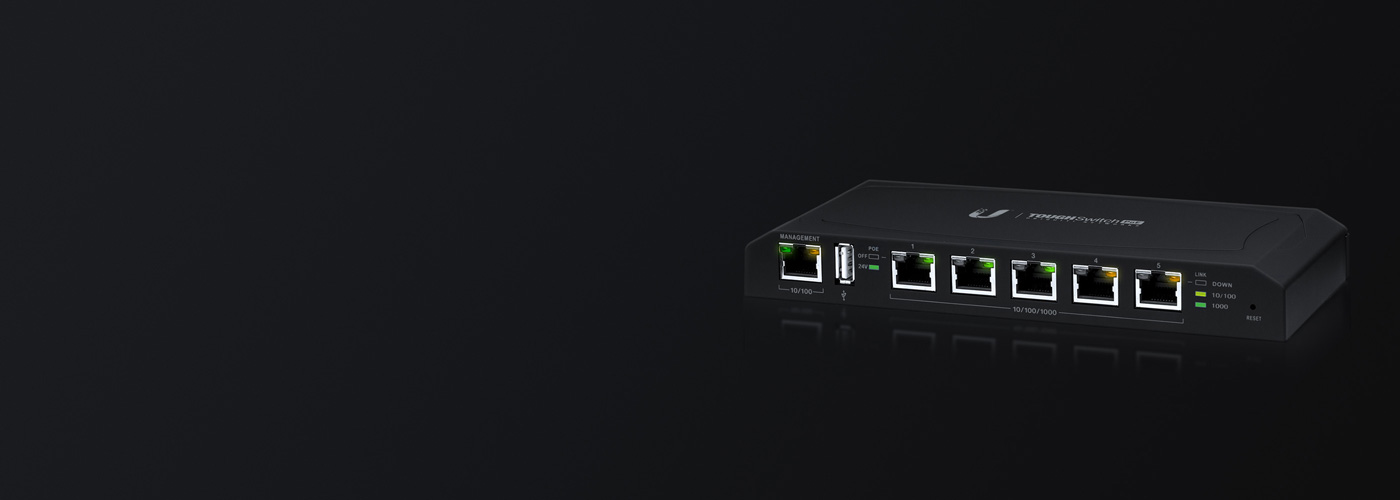 The TOUGHSwitch™ delivers reliable passive PoE and Gigabit connectivity to attached Ubiquiti devices and other devices that support passive PoE.