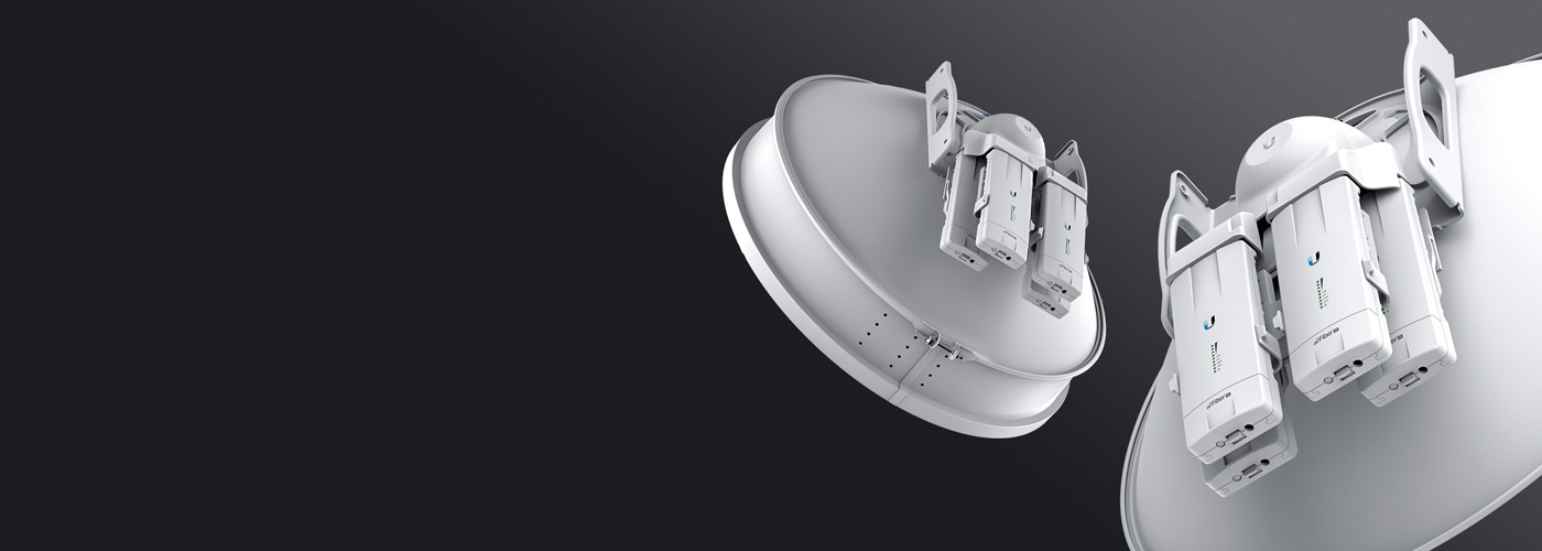 Quickly mount multiple airFiber X radios on existing airFiber dish antennas for Plug and Play installation. You can use radio channels of different sizes – even adjacent channels with no guard band – and place them anywhere within the radio band.