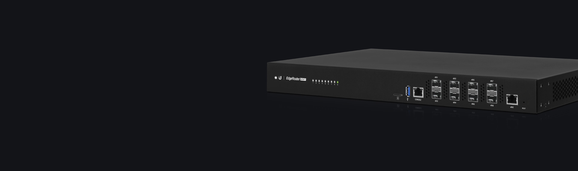 The EdgeRouter™ Infinity combines 80 Gbps aggregate throughput and price/performance value in a compact rackmountable form factor. It features 16 cores, 16 GB RAM and hardware acceleration for packet processing.