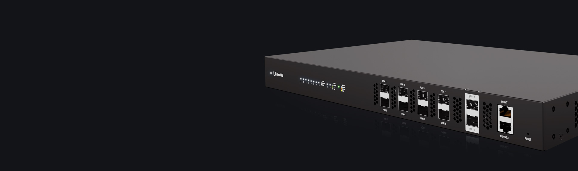 The OLT features eight PON ports to connect up to 1024 Nano G devices, and two SFP+ ports deliver up to 20 Gbps of uplink connectivity.